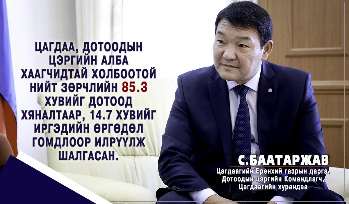 Цаашид дотоодын цэргийн үйл ажиллагааг өргөтгөх, зарим аймаг, сумдын цэвэр усны байгууламж, дулааны цахилгаан станцууд болон улс орны эдийн засгийн гол тулгуур болох стратегийн ач холбогдол бүхий ашигт малтмалын орд, томоохон байгууламжийг дотоодын цэргийн төсөвт болон гэрээт хамгаалалтад шилжүүлэхээр ажиллаж байна.